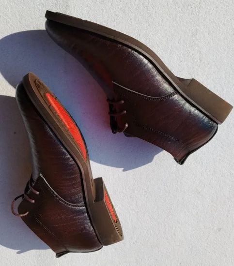 Stylish brown macro fiber leather lace-up formal shoes with a smooth glossy finish. Comfortable, well-stitched, and ideal for office wear , meetings, and formal occasions.