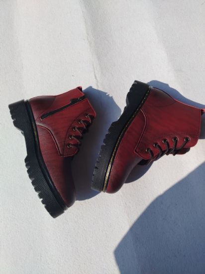 Bold maroon short ankle boots crafted with a smooth macro fiber leather finish, lace-up front and side zipper for easy wear. Built on a thick, rugged sole with strong grip perfect for everyday street style and long-lasting comfort.